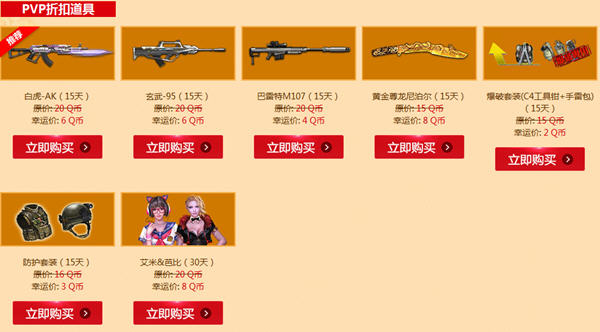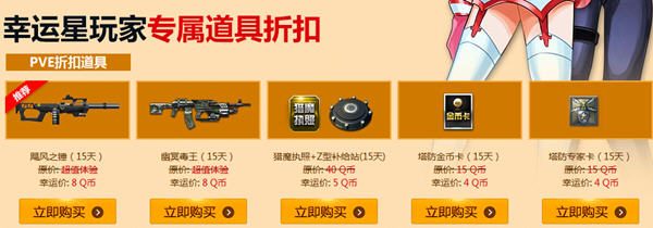 幸运星用户可以在活动页面以Q币购买折扣道具,每款折扣道具仅限购买一次;