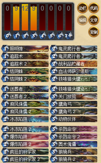 虽然火车王和秃鹫惨遭削弱,但事实证明,这些都没有影响到猎人的高效抢血能力和花样斩杀手段。废话不多说,卡组奉上: