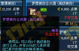 1、梦幻装扮合成器(普通装扮),价格:12200点券1个