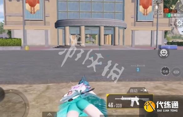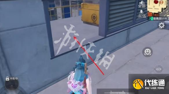 1、跑到图中的位置蹲着,调整好方向以后就不要动方向轮盘。