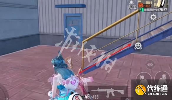 2、从外围这个楼梯上二楼,翻进去趴在二楼就可以无伤拿下了。