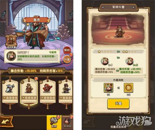 1、重复获取:如果重复获取了军师,可以在军师界面进行升星,升星后可增加更多的暴击伤害和对应兵种伤害加成。