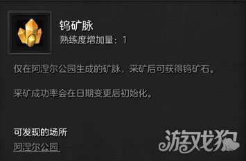 钨矿脉为九阶段矿石,采集场所在阿涅尔公园。
