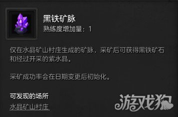 黑铁矿脉为八阶段矿石,采集场所在水晶矿山村庄。