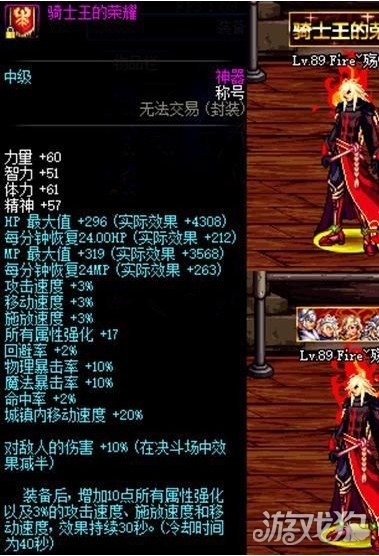 DNF08年的国庆飞天逐日套礼包是没有称号的,所以从09年的COS怪物套看起。这套礼包的称号是怪物的突击,力量和智力的加成非常少,双暴也只有2%,属于强化技能称号,五个角色职业的30级技能+1。