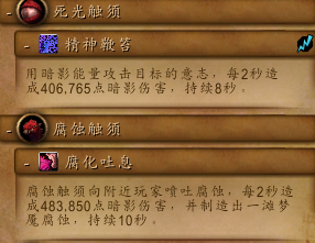 一般来讲腐蚀触须的击杀优先级更高,所以这时候死光触须需要坦克去打断,防止被死光触须点名的用户配合BOSS其他技能出现减员,所以飞盘不要乱用,读条到最后再打断。