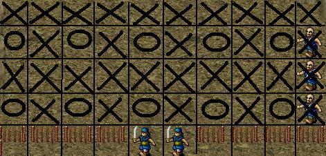 走到中间村庄向上一行及其以下区域内,则下个回合开始前,敌军张楠率部出击,敌伏兵焦触等7人出现。