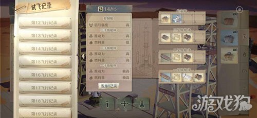 火箭发射任务总共有14个阶段性目标和1个终结目标。不同的部件搭配,会影响到火箭整体的不同参数,从而影响到最终结果,因此要选择合适的部件搭配。研究员们可以通过查看每一次的飞行记录,对比搭配的优劣,进而不断总结分析出更精准的搭配方案,最终完成发射目标。
