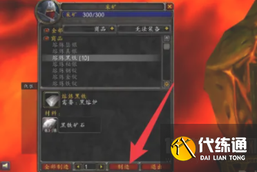 在冶炼列表中选择冶炼黑铁。