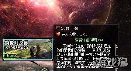镜像阿拉德的入口在暗黑城港口雅妮丝的旁边,需要完成前置任务才可进入。每天最多只能进入10次,通关奖励里面会包含强烈的气息。