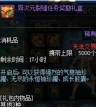 除了强烈的气息,搜集的念气结晶可以兑换深渊入场券,同时没刷一次会获得1个念气矿石碎片,可以在NPC九龙处兑换巨龙宝珠,附魔项链、手镯、鞋子,可以增加44点独立攻击力。