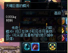 在低级副本中都可以见到怪物掉落天帷巨兽的鳞片,例如逆流瀑布。