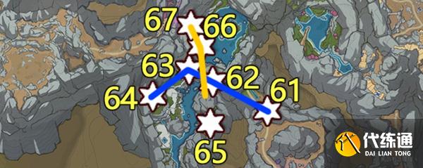 流明晶石67:湖泊旁边的石路上有一个风元素方碑,攻击风碑解锁风场顺着风场的中间获取;