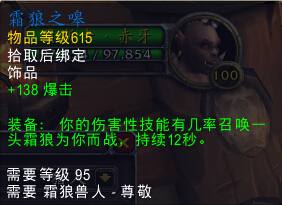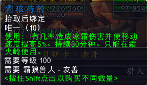 装备:你的伤害有机会召唤一只霜狼为你而战,持续12秒