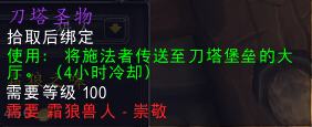 使用:传送施法者到刀塔堡垒的大厅(4小时冷却)售价2500G