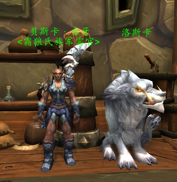 声望崇拜后可以得到霜狼兽人成就和霜狼的头衔