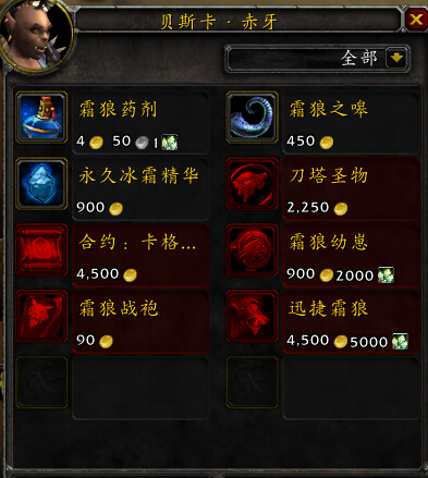 在魔兽世界6.0中部落用户第一个接到的声望应该就是霜狼氏族,这里就给玩家们分享一下霜狼氏族声望崇拜之后的军需官出售物品列表吧。