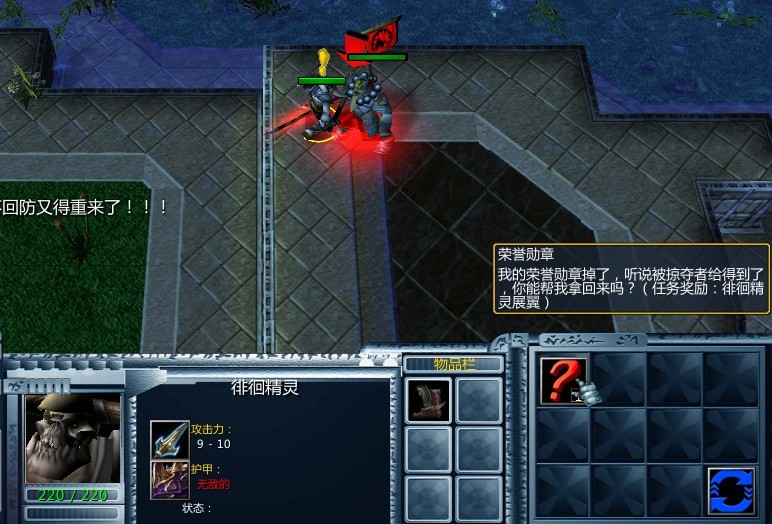 带上勋章给徘徊 得到徘徊精灵展翼(加防御200点,闪避25,生命5000点,移动速度180。)