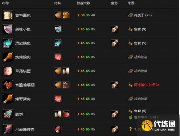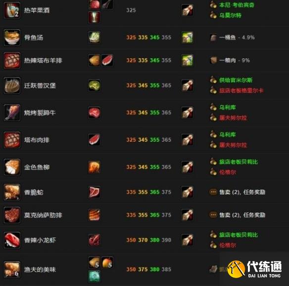 非钓鱼用户用厄运之槌东区小鬼Boss掉落配方食谱:洛恩塔姆薯块或希利苏斯烹饪280级以后通过一个任务获得沙漠肉丸子配方。