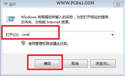 1、使用Win+R组合快捷键打开运行对话框,然后在打开后面,键入cmd命令,然后点击底部的确定,如下图:
