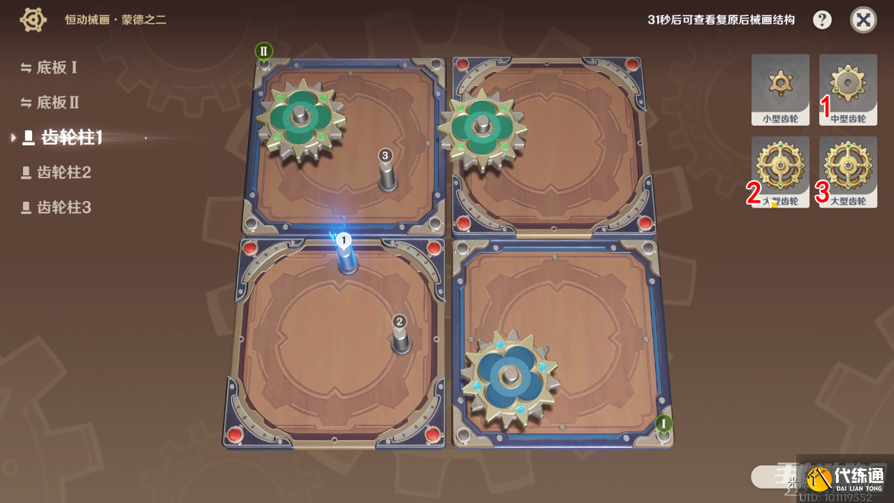 两个大型齿轮放在齿轮柱2和齿轮柱3处