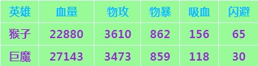 一、猴子、巨魔属性对比(满级)