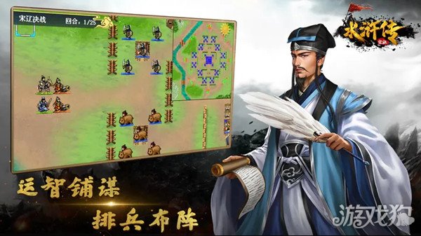 开局呼延灼部上当被引到水里,第1回合先把除呼延灼外的杀光,不开评分的可直接击杀呼延灼,杀死呼延灼触发剧情呼延灼投降且开城门宋江部分两队进攻(注意在新的回合只用一个人击杀呼延灼),攻城注意先杀远程兵(伤害较高),最后全歼敌军过关。