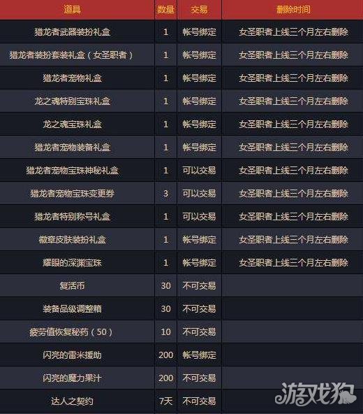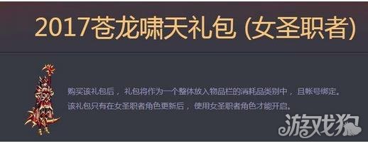 注意:购买礼包之后礼包会与账号之间绑定,并且该礼包只有女圣职者角色更新之后才能开启!