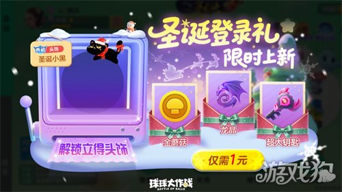 12月19日至1月11日,每天登录先领免费福利,同时花1元解锁圣诞登录礼!龙晶、极品皮肤包、金蘑菇全拿捏!