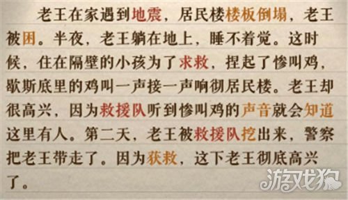 老王却很高兴,因为救援队听到惨叫鸡的声音就会知道这里有人。