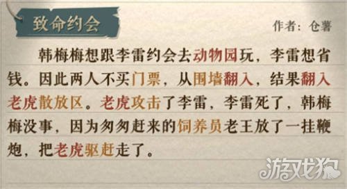 海龟蘑菇汤致命约会攻略,致命约会完整解锁。致命约会这个故事真的很扯,我觉得正常人一般都不会能想到,不过这也是很多海龟汤的乐趣所在。