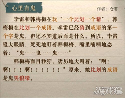李雷已经猜到成语的第一个字是鬼,但还不知道后而是什么。