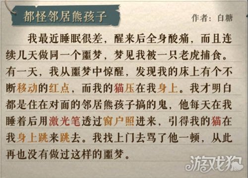 我才明自都是住在对面的邻居熊孩子搞的鬼,他每天在我睡着后用激光笔透过窗户照进来,引得我的猫在我身上跳来跳去。