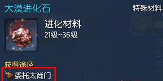 其实非常简单,查看大漠进化石信息的时候可以看得到的,明确说了委托太尚门,意思就是说这个东西是委托太尚门制作出来的。当然由于是可以交易的东西,所以也可以拍卖行或向其他用户购买。