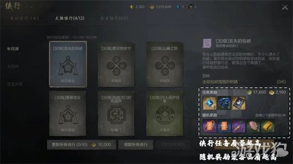1、随机奖励:完成侠行任务可获得被封印的装备等随机奖励。