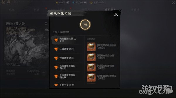 2、掉落物品:武器、灵锁装备、失心套装防具、褪色红莲八卦牌等。
