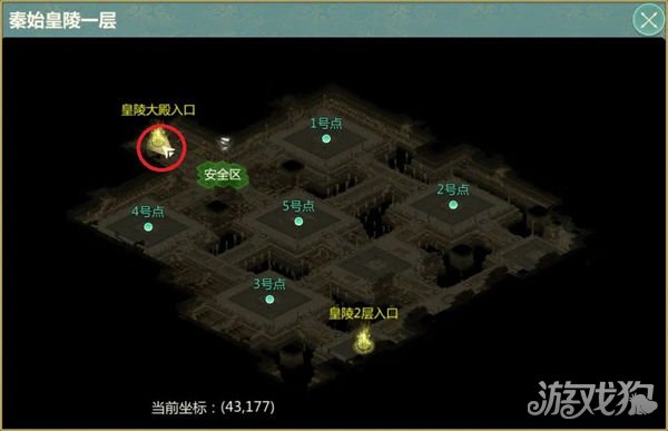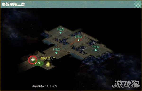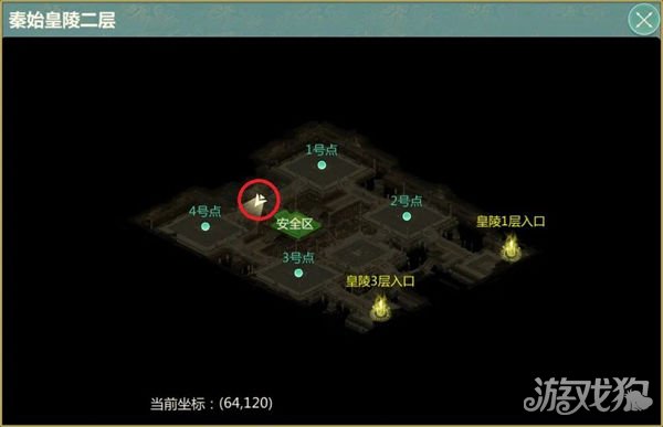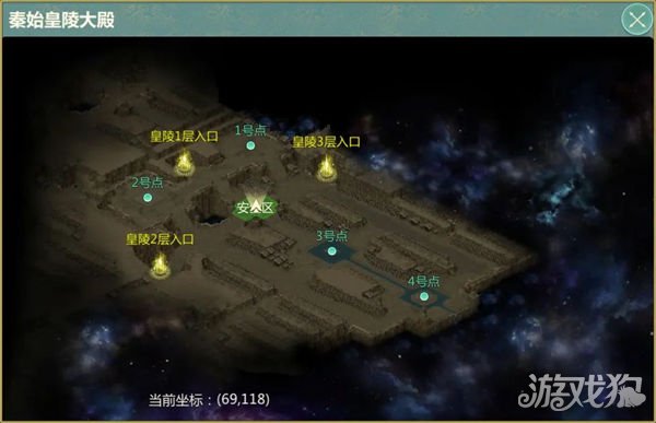 秦始皇陵有单独的活动地图,一共分为4层:大殿、一层、二层、三层。在大殿时可以随意前往其他层。