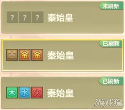 秦始皇的五行属性则是随机的,未刷新时无法提前知晓。各分身可能会出现五行属性重复的情况。