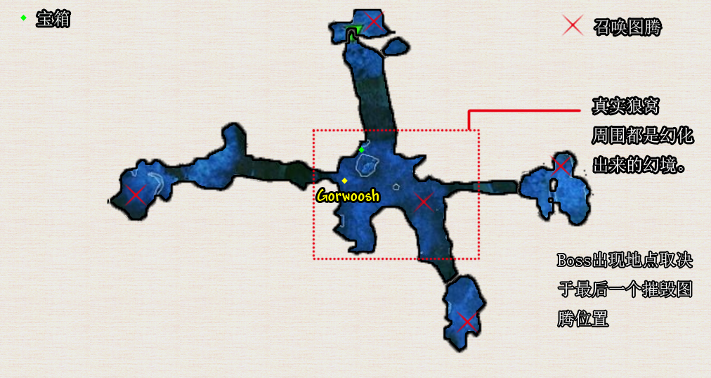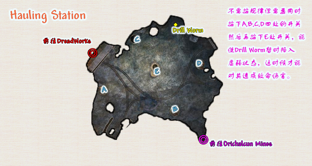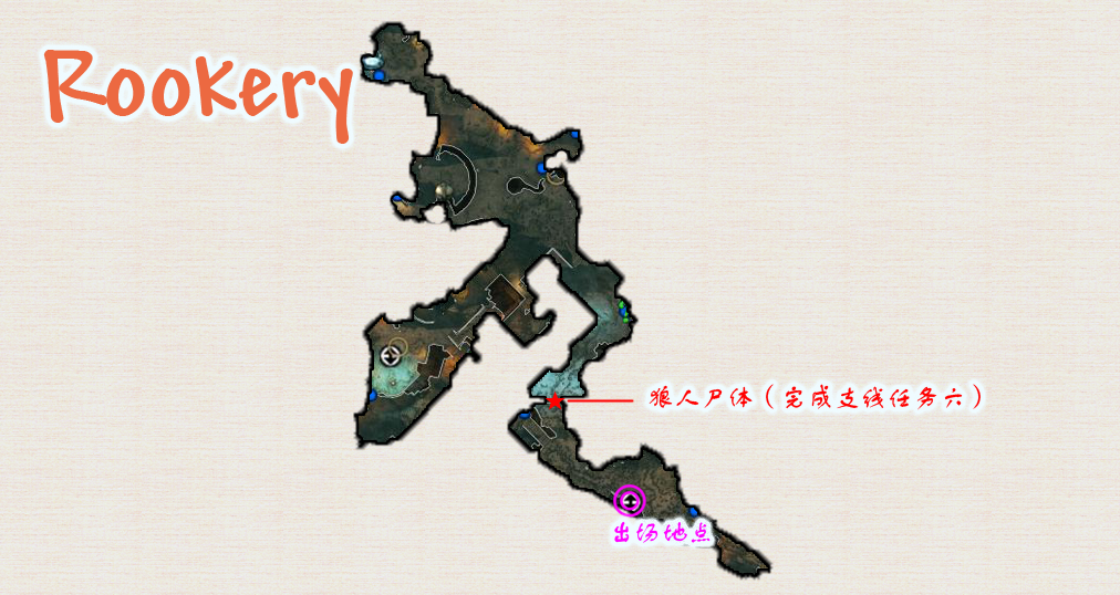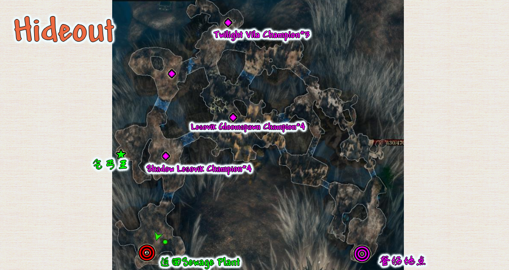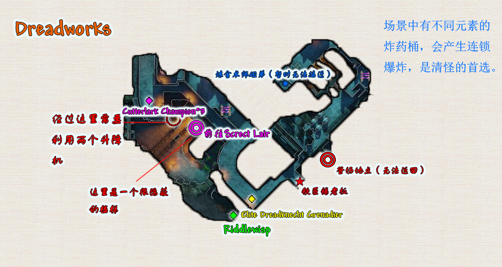 从野外商人旁边的传送门进入【旧隧道】结束场景。由于场景元素较多,就没把怪物标记出来了。