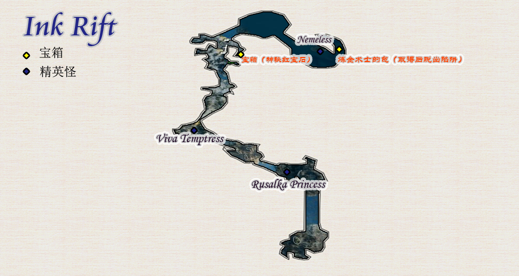 3.击杀Lesovik Chieftain后可以得到古代硬币,带着古代硬币前往地图C点将硬币投进水中,会出现Ancient Viva,击杀后获得武器油,带着武器油前往Exculibar点,即可取得圣剑Exculibar。