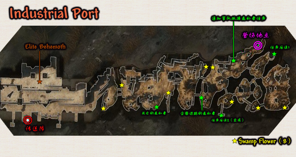 由于暂时没截到完整地图,有空的时候再补充。地图很简单,只要将看的到的4个【毒物喷射器】摧毁即可。场景内的怪物在【毒物喷射器】范围内会回血,非常难杀。如果有【时间暂停】技能的用户可以尝试使用技能先摧毁建筑再清理怪物,其他用户需要引出范围再杀。Mastermind Genius只要有【毒物喷射器】就很难杀死,血量低的时候会跑去回血,100+HP每秒,所以一定要摧毁完再杀。