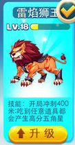 开局冲刺400米(和冰原狼效果一样)吃任意道具都会产生高分五角星。个人觉得雷焰狮王这个是当之无愧的萌坐骑,凌厉的眼神,一股王者霸气的感觉,其技能效 果在冰狼的基础上做了一个吃任意道具就能产生高分五角星,玩家们可以试想,冰狼吃的永远是金币,而雷焰狮王吃过五角星后,分数明显要比其他坐骑分数高很多, 冲分必备坐骑。
