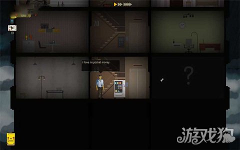 《空山求生记》中角色与售货机的互动,身边点亮的房间都已探索过