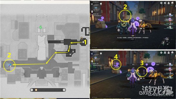 (13)然后追踪任务,从1位置一直到2位置,在2位置对话完后,再去旁边3和4位置【调查】一下