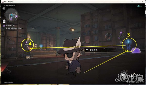 (10)下来后,再从右前方1机关传送到2机关位置后去上面3位置【调查】,获得第3个证物