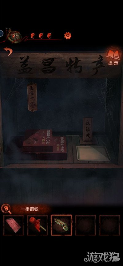 进庙点击元宝机关 从头全点一遍 得到铜钱,用铜钱获得礼盒,去中间摸孔明灯,记住伞图案,回到庙里,关伞