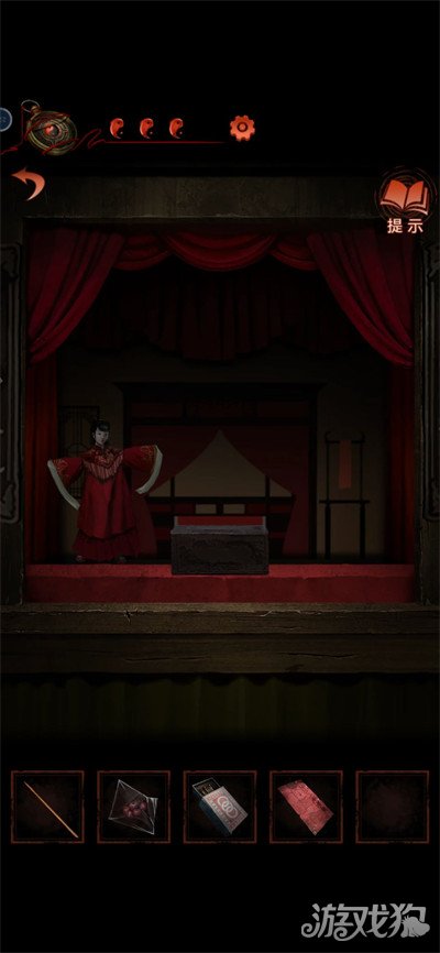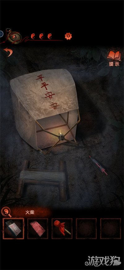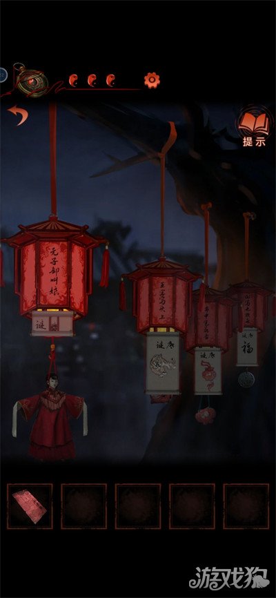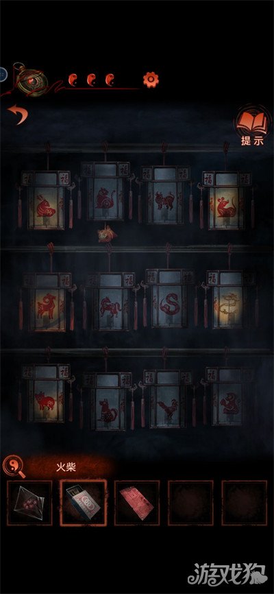 把龙放在中间的灯笼上,从轿子里得到请帖和绣花鞋,根据请帖背后线索,灯笼下面得到火柴点亮动物,获得老虎布偶